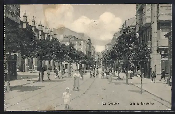 AK La Coruna, Calle de San Andreas, Strassenpartie