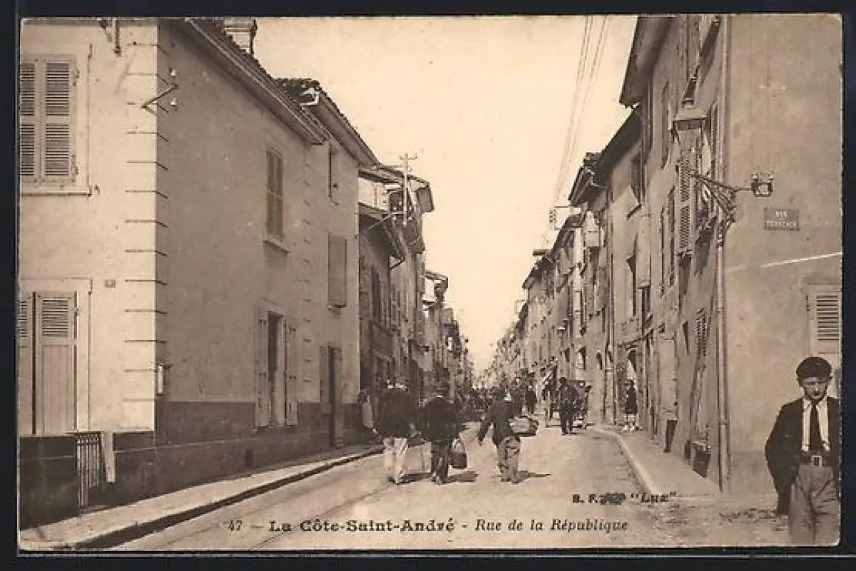 AK La Côte-Saint-André, Rue de la République animée avec passants et bâtiments d`époque