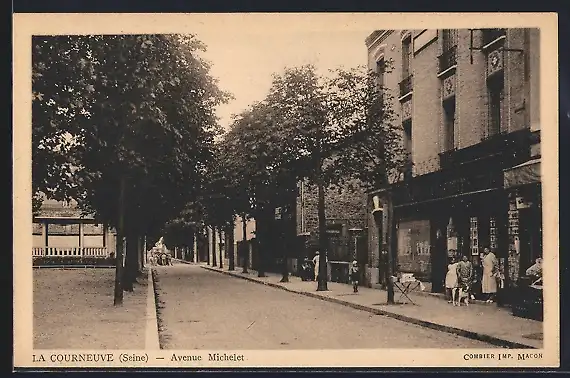AK La Courneuve, Avenue Michelet avec des passants et des arbres alignés