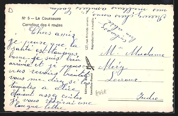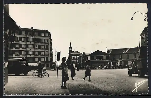 AK La Courneuve, Carrefour des 4 routes avec passants et véhicules