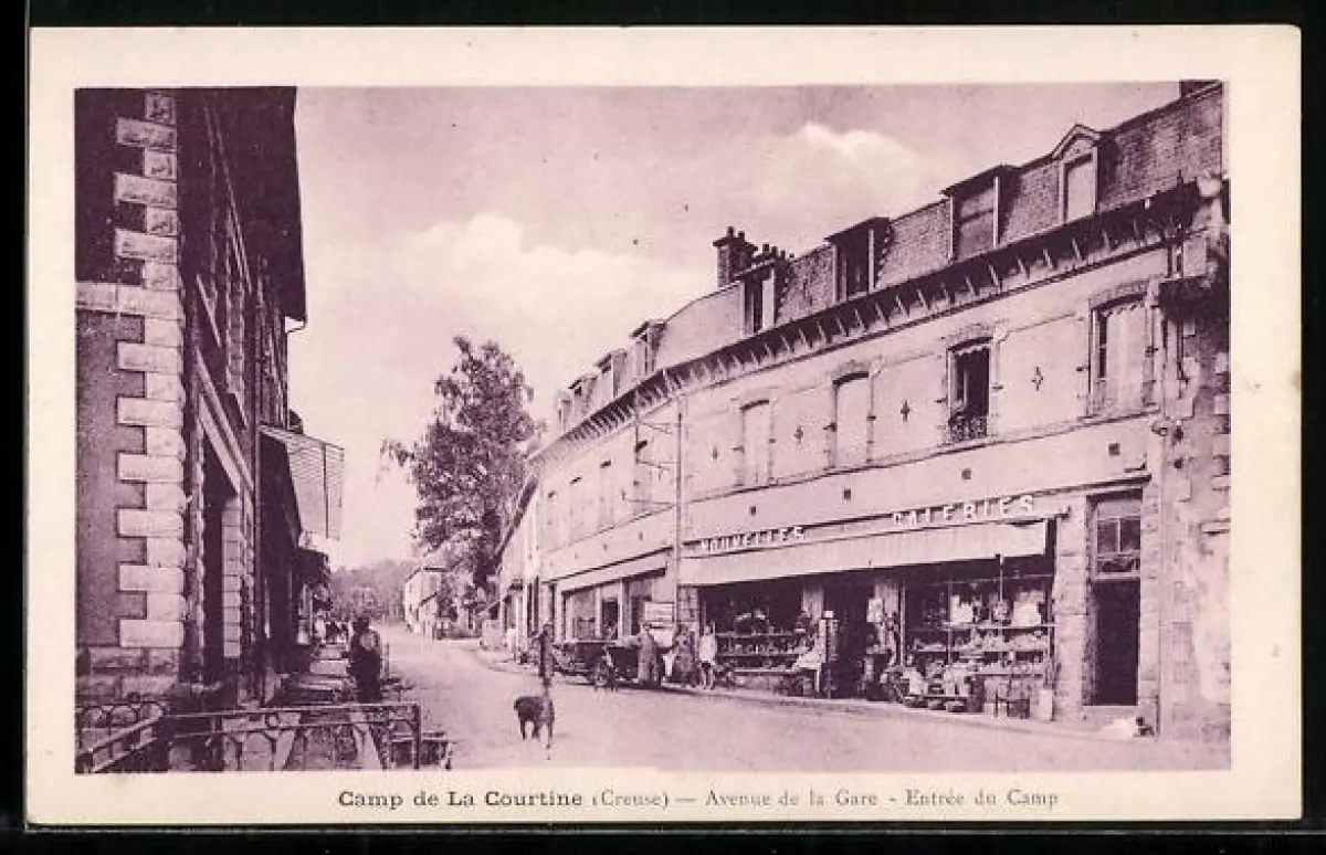 AK La Courtine, Avenue de la Gare, Entrée du Camp