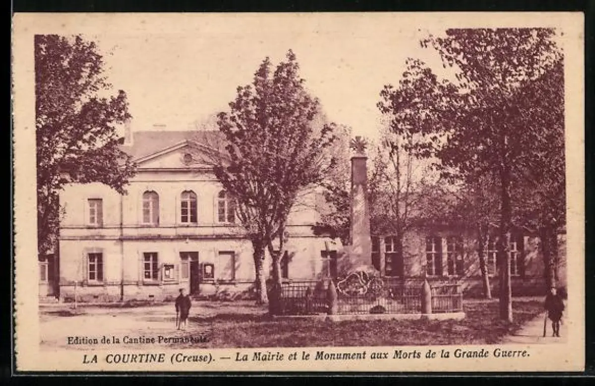 AK La Courtine /Creuse, La Mairie et le Monument aux Morts de la Grande Guerre
