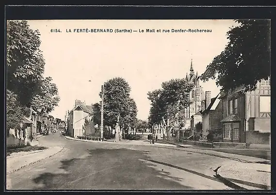 AK La Ferté-Bernard, Le Mail et rue Denfer-Rochereau
