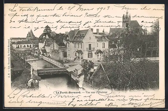 AK La Ferté-Bernard, Vue sur l`usine et le pont