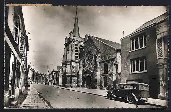 AK La Ferté-Milon, L`Eglise, une Rue, une voiture