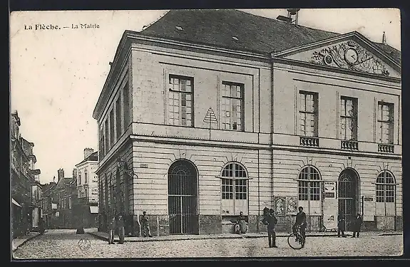 AK La Flèche, La Mairie avec des passants devant l`édifice