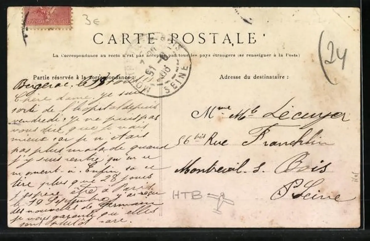 alte Ansichtskarte, gelaufen 1908, Eckknicke oben, guter Zustand