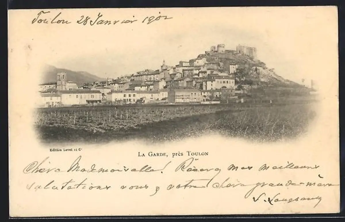 AK La Garde /Toulon, Vue générale du village sur la colline