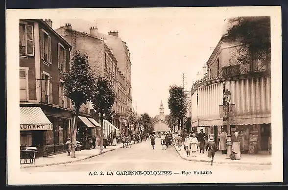 AK La Garenne-Colombes, Rue Voltaire animée avec passants et commerces