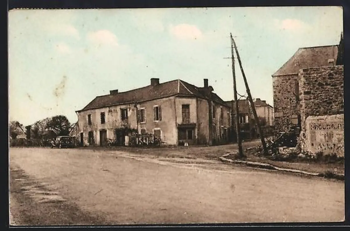 AK La Gravelle /Mayenne, Le haut du bourg avec bâtiments anciens et route principale