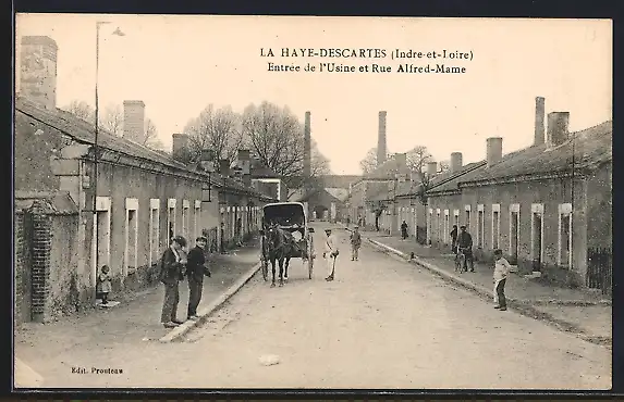 AK La Haye-Descartes, Entrée de l`Usine et Rue Alfred-Mame