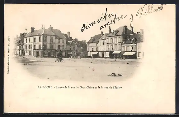 AK La Loupe, Entrée de la rue du Gros-Chêne et de la rue de l`Église