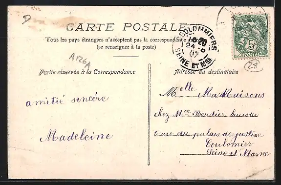 alte Ansichtskarte, gelaufen 1907, Eckknicke unten, guter Zustand