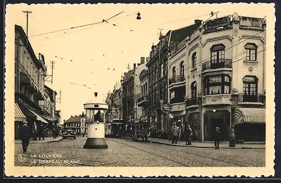 AK La Louvière, Le Drapeau Blanc, Strassenbahn