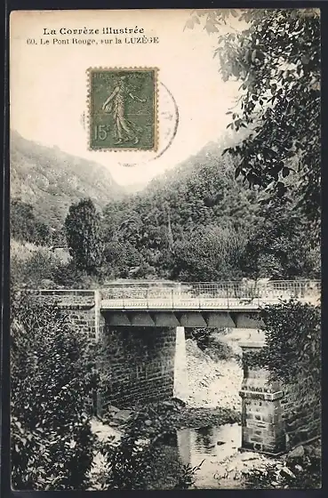 AK La Luzège, Le Pont Rouge, vue du pont dans un cadre naturel
