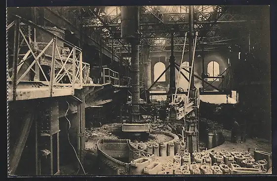 AK La Métallurgie, Vue d`un bassin de coulée de lingots d`acier, Giesserei