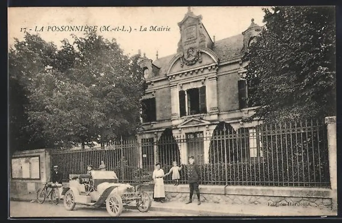 AK La Possonnière /M.-et-L., La Mairie avec voiture et vélos devant