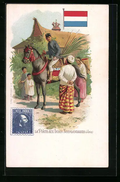 AK La Poste aux Indes Nèerlandaises, Indonesischer Briefträger auf Java
