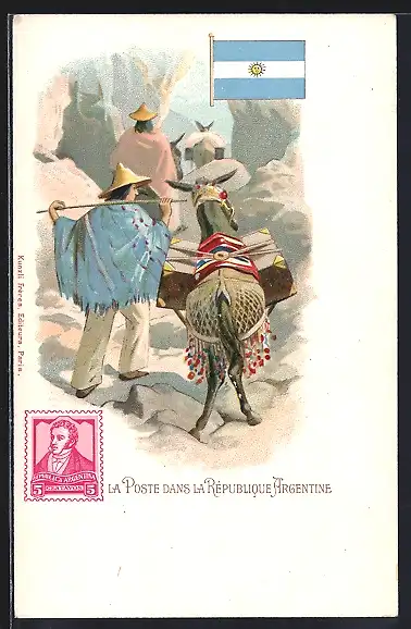 AK La Poste dans la Republique Argentine, Briefträger beim transportieren der Post mit Maultieren