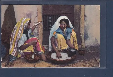 AK La Preparation du Couscous au Maroc, gelaufen von 1913, leider wurde die Briefmarke entfernt.
