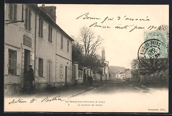 AK La Queue-lez-Yvelines, Le Bureau de Poste, Strassenpartie am Postamt