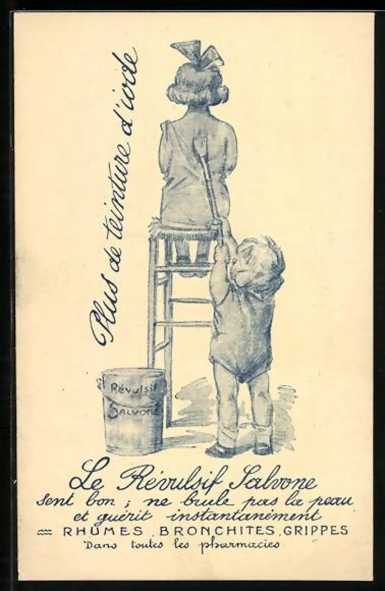 AK La Revulsif Salvone, Reklame, Junge bemalt den Rücken seiner kleinen Freundin mit Hustenbalsam