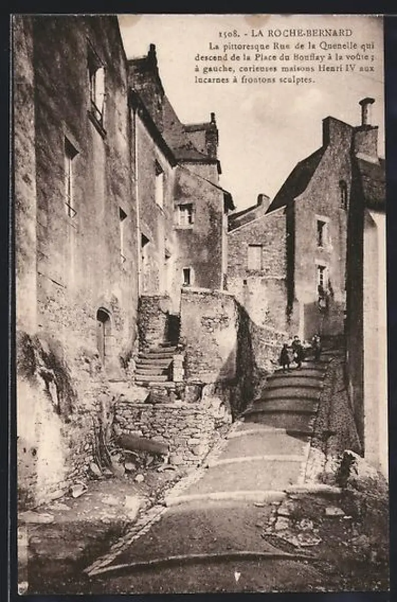 AK La Roche-Bernard, Rue de la Quenelle avec maisons Henri IV aux lucarnes sculptées