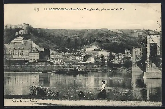 AK La Roche-Guyon, Vue générale prise en aval du Pont
