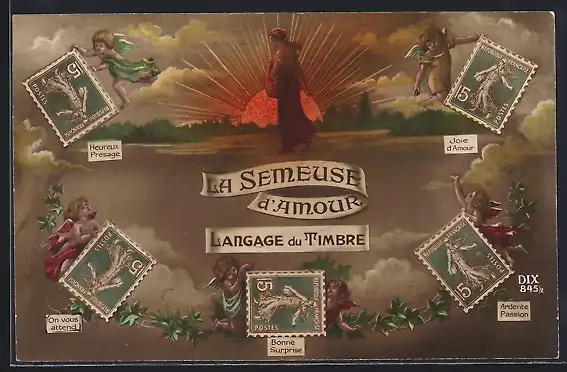 AK La Semeuse d`Amour, Langage du Timbre, Briefmarkensprache