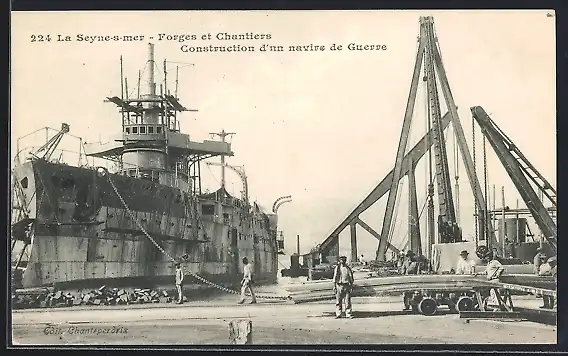 AK La Seyne-sur-Mer, Forges et Chantiers, Construction d`un navire de guerre