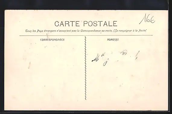 Personenbezogene Daten auf der Rückseite der Karte wurden durch blauen Textmarker unkenntlich gemacht. Die blauen Stellen sind auf die Vorderseite durchgeweicht und wirken sich negativ auf das Postkartenfoto aus