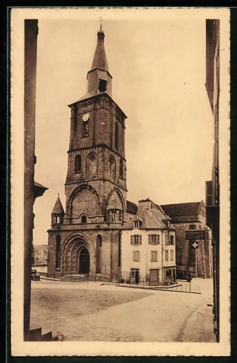 AK La Souterraine /Creuse, Église et place centrale avec bâtiments environnants