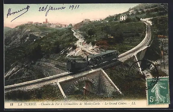 AK La Turbie, Chemin de Fer à Cremaillere de Monte-Carlo, Le Grand Cintre, Bergbahn