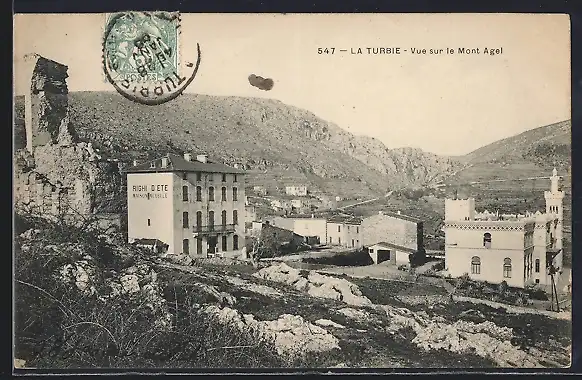 AK La Turbie, Vue sur le Mont Agel et les bâtiments environnants