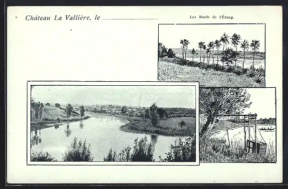 AK La Vallière, Les Bords de l`Étang avec vue sur le château et paysages environnants