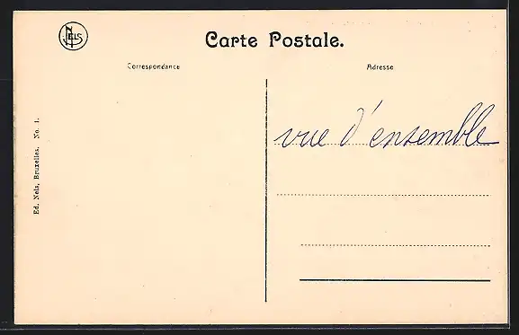 Personenbezogene Daten auf der Rückseite der Karte wurden durch blauen Textmarker unkenntlich gemacht. Die blauen Stellen sind auf die Vorderseite durchgeweicht und wirken sich negativ auf das Postkartenfoto aus