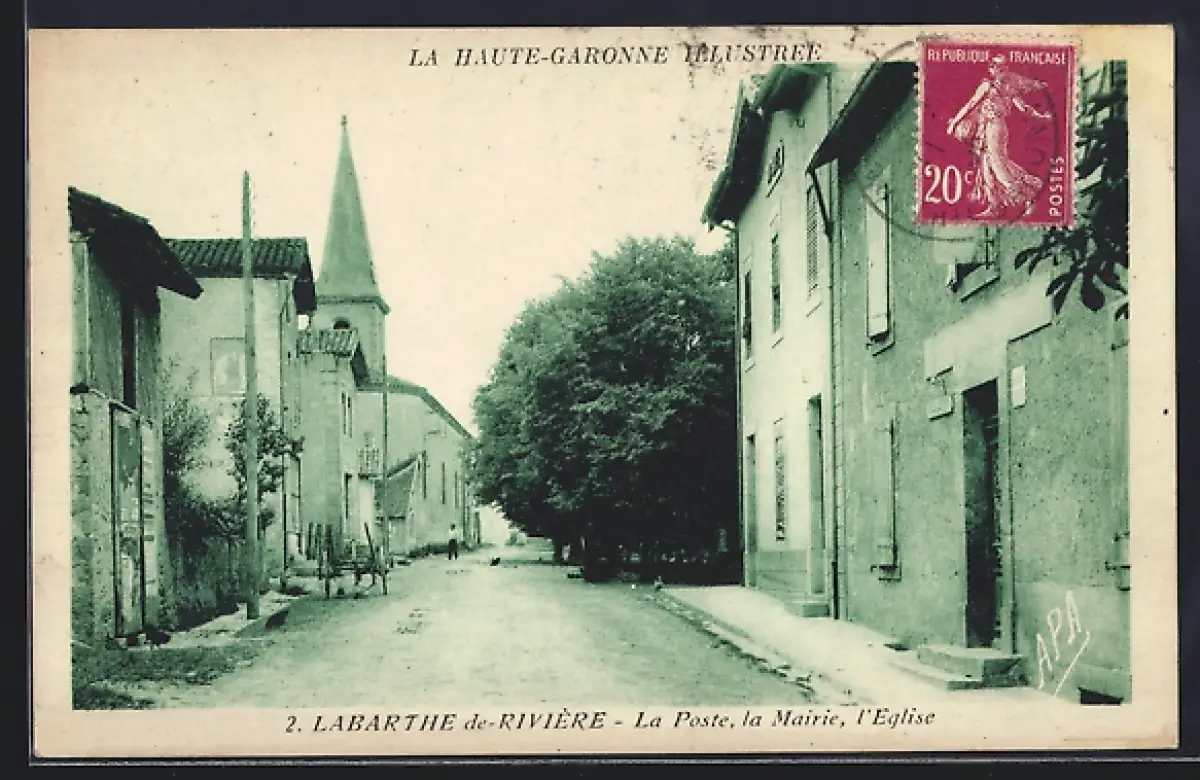 AK Labarthe-de-Rivière, La Poste, la Mairie, l`Église