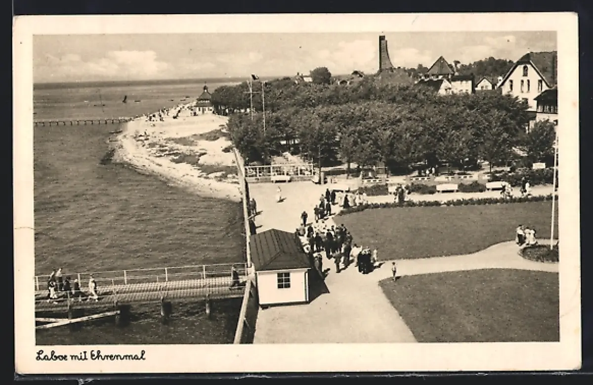 AK Laboe, Strandpromenade mit Ehrenmal