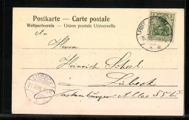 alte Ansichtskarte, gelaufen 1905, guter Zustand