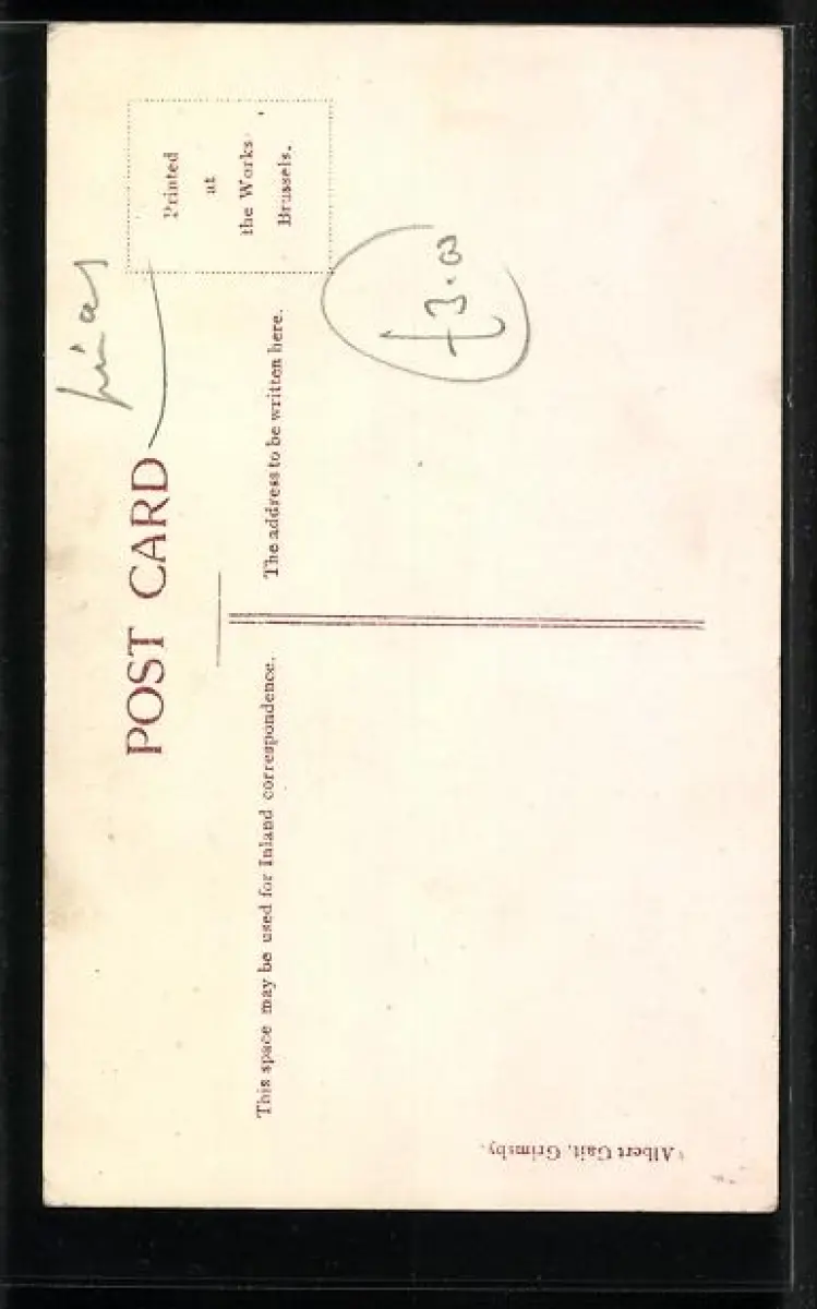 Personenbezogene Daten auf der Rückseite der Karte wurden durch blauen Textmarker unkenntlich gemacht. Die blauen Stellen sind auf die Vorderseite durchgeweicht und wirken sich negativ auf das Postkartenfoto aus