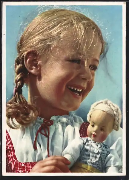 AK Lachendes Mädchen mit Puppe