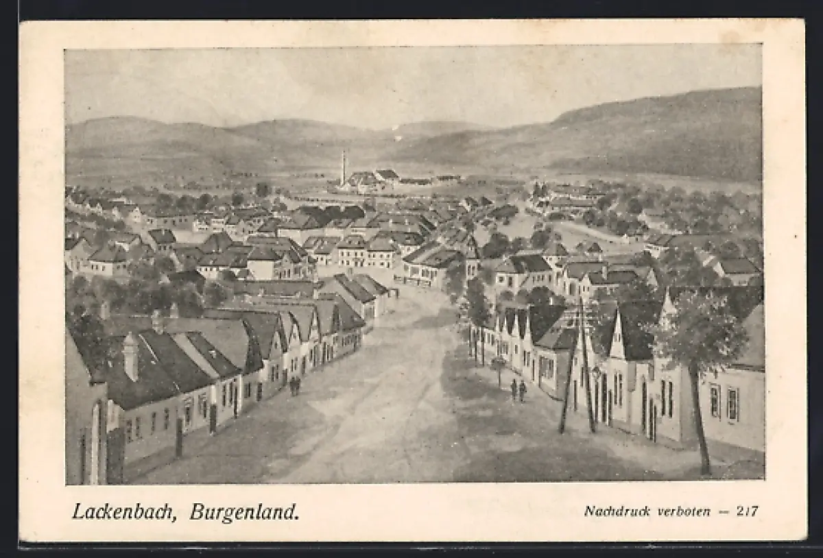 AK Lackenbach, Ortsansicht aus der Vogelschau