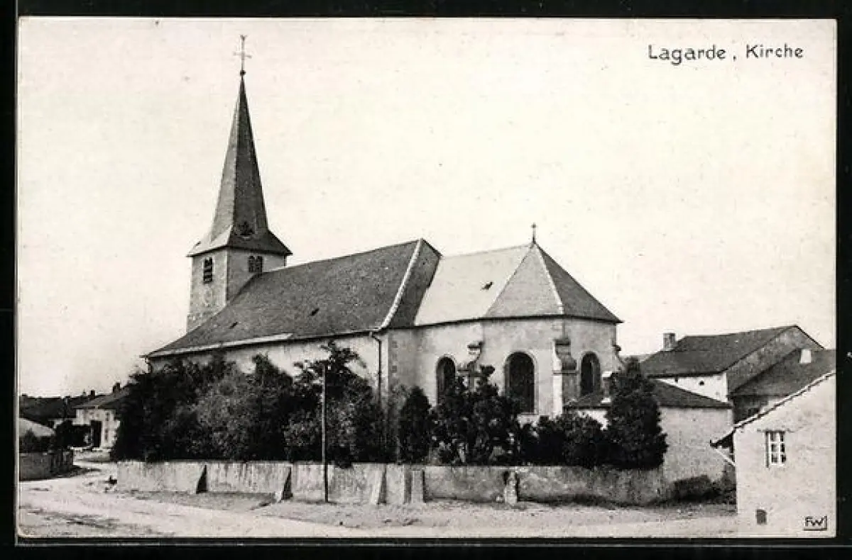 AK Lagarde, Kirche mit Strassenpartie
