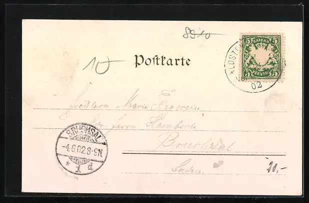 alte Ansichtskarte, gelaufen 1902, guter Zustand