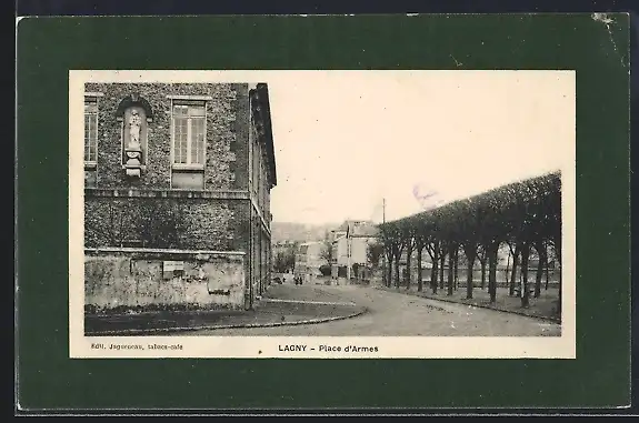AK Lagny, Place d`Armes avec bâtiments et arbres alignés