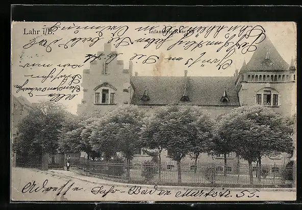 AK Lahr / Baden, Infanterie-Kaserne mit Bäumen