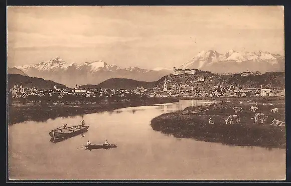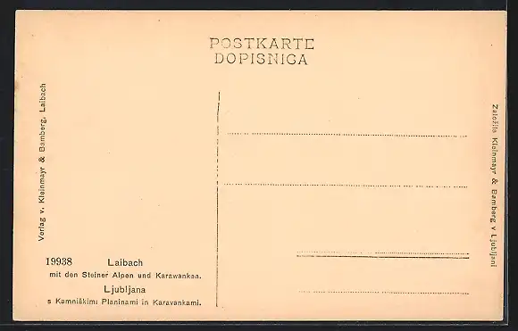 AK Laibach, Ortsansicht mit den Steiner Alpen