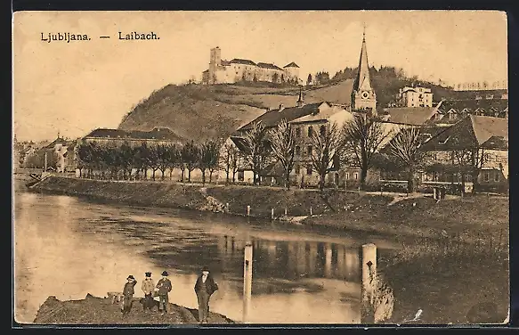 AK Laibach, Teilansicht mit Kirche und Schloss