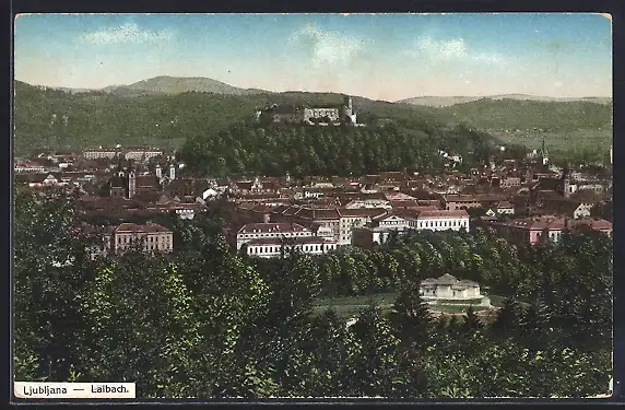 AK Laibach, Totalansicht mit Kastell aus der Vogelschau