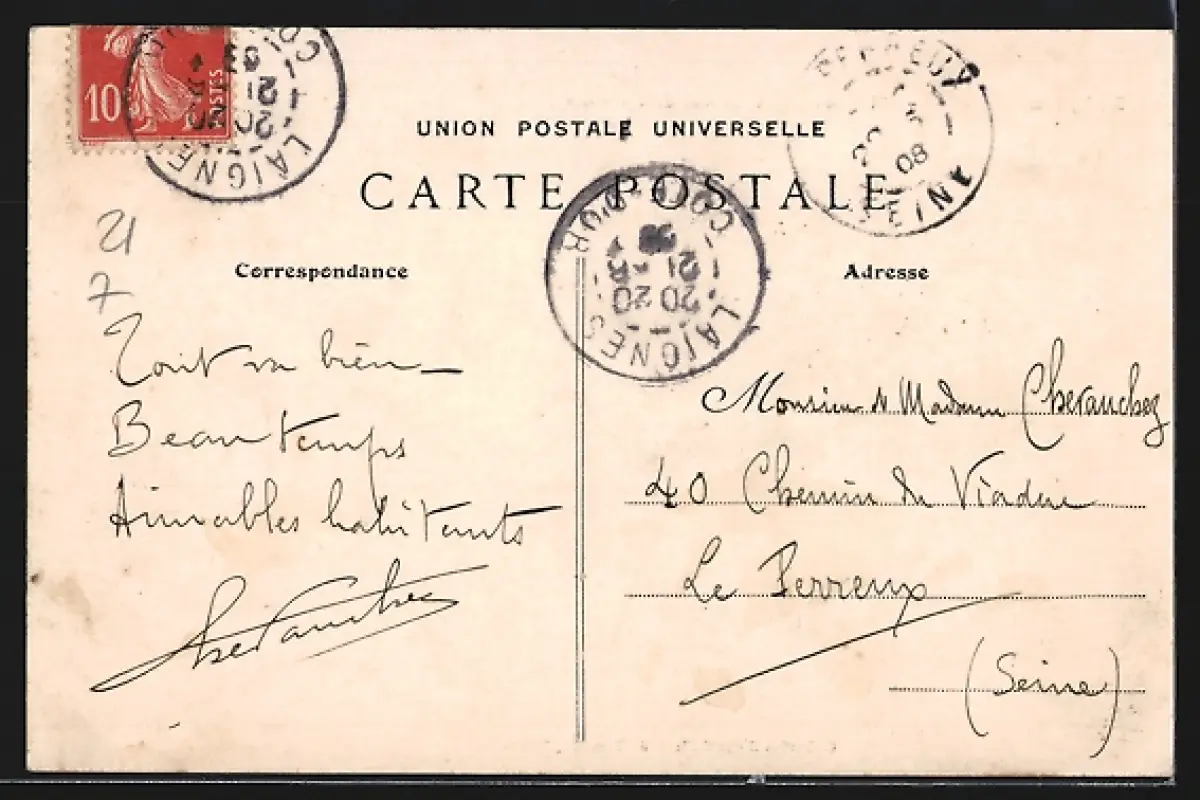 alte Ansichtskarte, gelaufen 1908, Briefmarke entfernt, guter Zustand